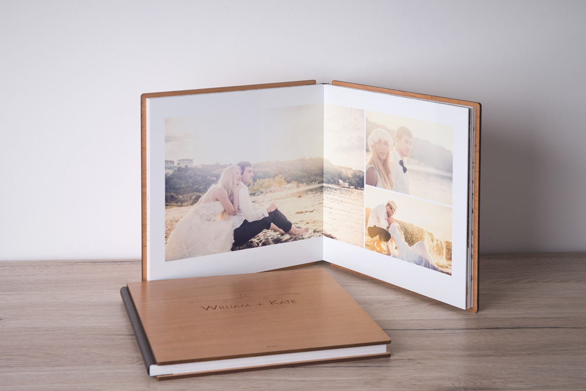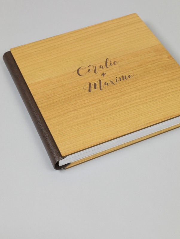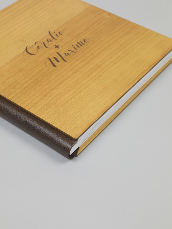 - Un album premium 100% Made in France avec couverture personnalisée en bois, lin ou cuir selon le forfait choisi ou en option.